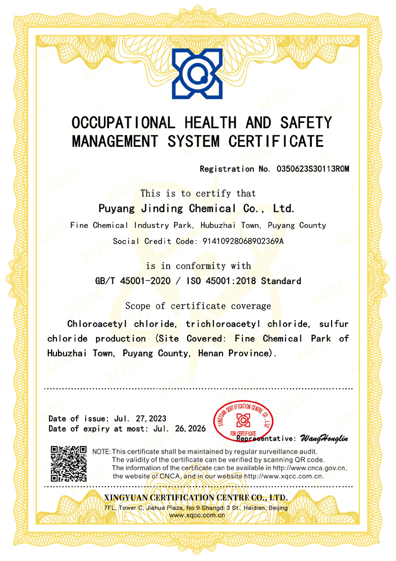 濮陽市金鼎化工有限公司所屬其他基礎化學原料制造,公司主要產品規模為:10000噸/年氯乙酰氯、10000噸/年氯乙酸、5000噸/年氯化硫、6000噸/年氯甲醚、5000噸/年三氯乙酰氯、7000噸/年氯乙酸甲酯、3000噸/年二氯乙酸甲酯,副產鹽酸13000噸/年。產品廣泛應用于醫藥、農藥、染料、膠劑等行業。